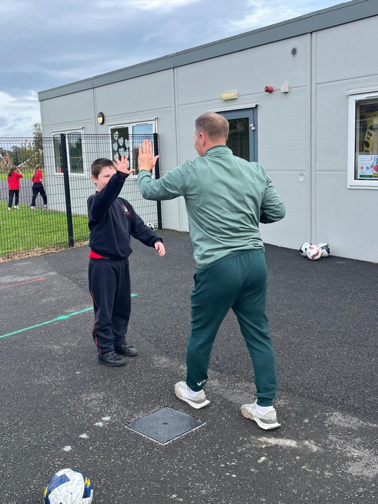 Paul and Aoife took coaching sessions with our 3rd classes, Rang Draíocht, Rang Sonas and Rang Aisling and the children really enjoyed it, as you can see from these photos!
